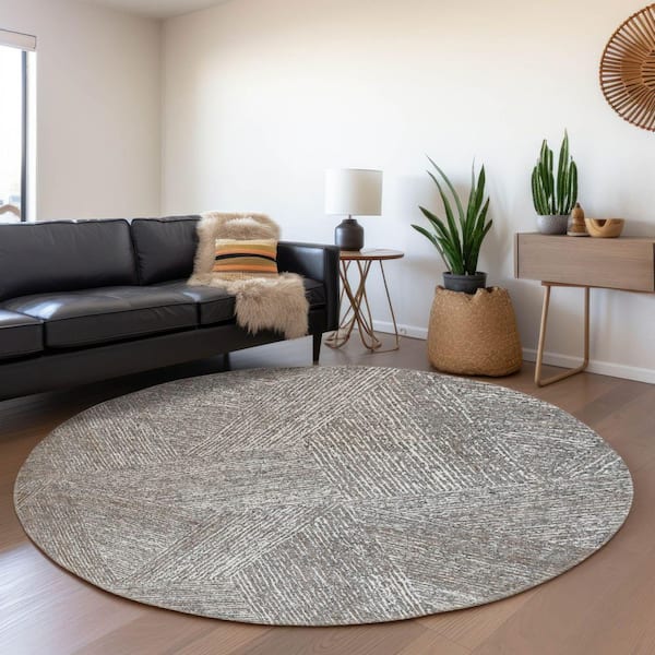 Mayfield Premium Machine Washable Abstract AMF991 Gray 8 ft. x 8 ft. Round Rug