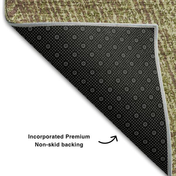 Mayfield Premium Machine Washable Abstract AMF991 Green 8 ft. x 8 ft. Round Rug