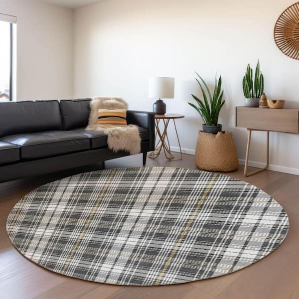 Mayfield Premium Machine Washable Abstract AMF993 Charcoal 8 ft. x 8 ft. Round Rug