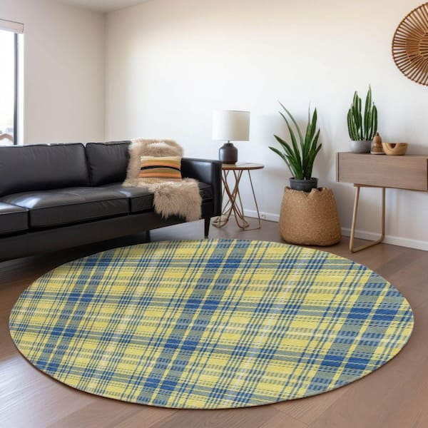 Mayfield Premium Machine Washable Abstract AMF993 Yellow 8 ft. x 8 ft. Round Rug