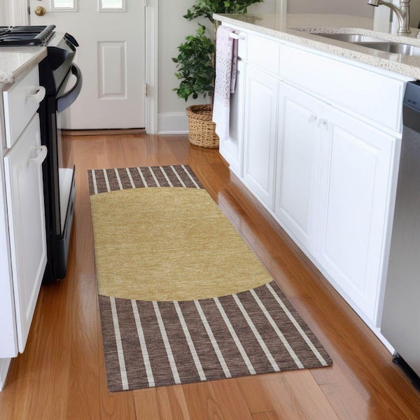 Mayfield Premium Machine Washable Abstract AMF994 Brown 2 ft. 3 in. x 7 ft. 6 in. Runner Rug