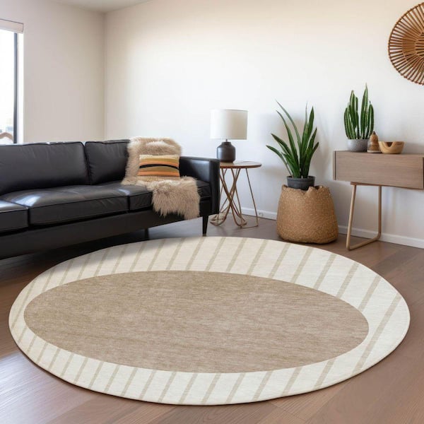 Mayfield Premium Machine Washable Abstract AMF994 Ivory 8 ft. x 8 ft. Round Rug