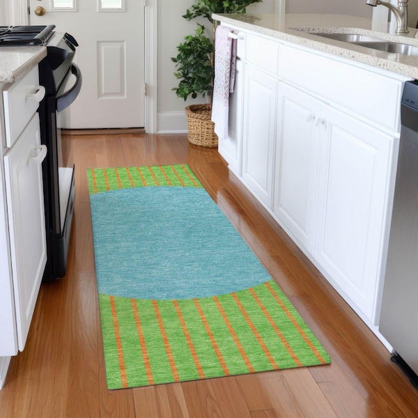 Mayfield Premium Machine Washable Abstract AMF994 Lime 2 ft. 3 in. x 7 ft. 6 in. Runner Rug
