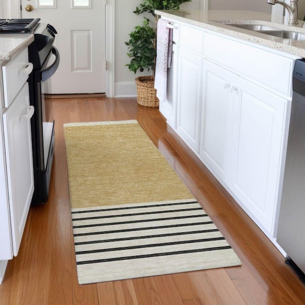 Mayfield Premium Machine Washable Abstract AMF995 Gold 2 ft. 3 in. x 7 ft. 6 in. Runner Rug