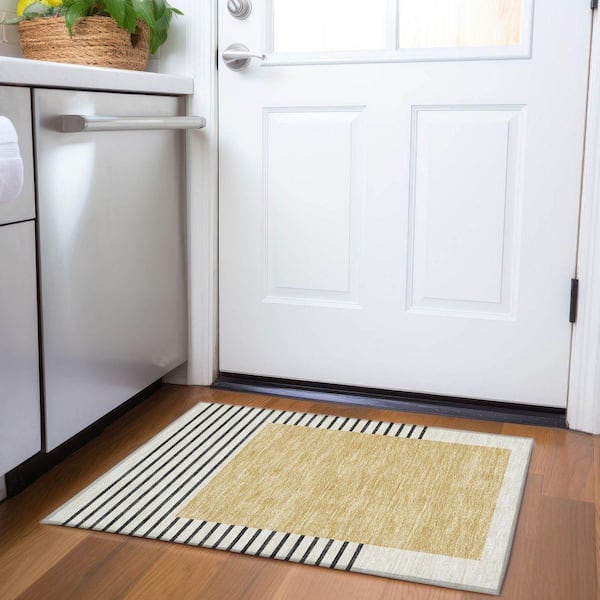 Mayfield Premium Machine Washable Abstract AMF995 Gold 2 ft. x 3 ft. Area Rug