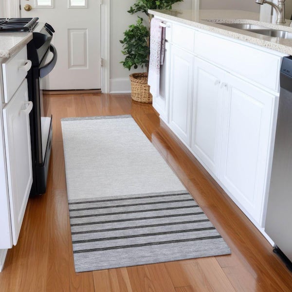 Mayfield Premium Machine Washable Abstract AMF995 Gray 2 ft. 3 in. x 7 ft. 6 in. Runner Rug