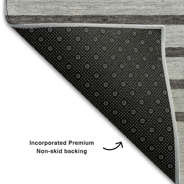Mayfield Premium Machine Washable Abstract AMF995 Gray 8 ft. x 8 ft. Round Rug