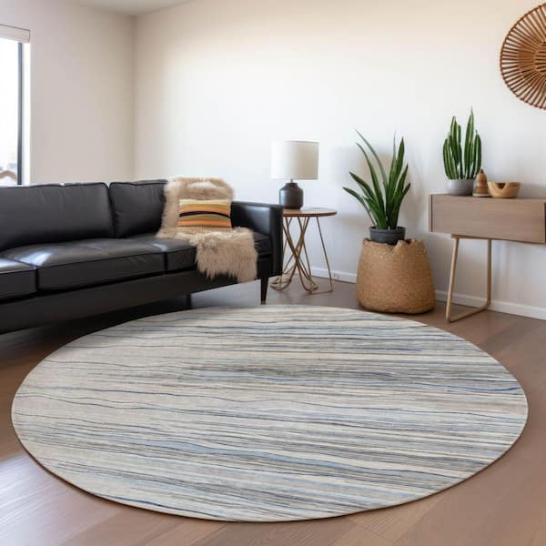 Mayfield Premium Machine Washable Abstract AMF996 Gray 8 ft. x 8 ft. Round Rug