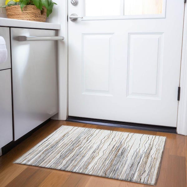 Mayfield Premium Machine Washable Abstract AMF996 Ivory 2 ft. x 3 ft. Area Rug
