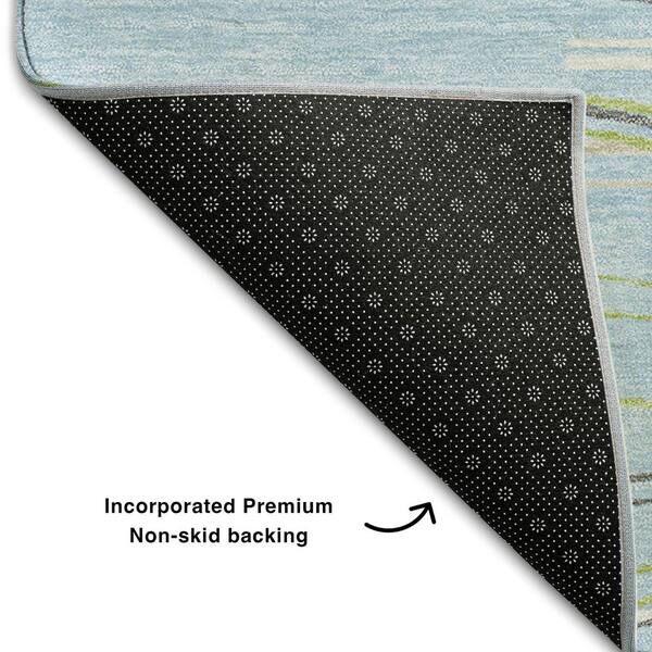 Mayfield Premium Machine Washable Abstract AMF996 Sky 8 ft. x 8 ft. Round Rug
