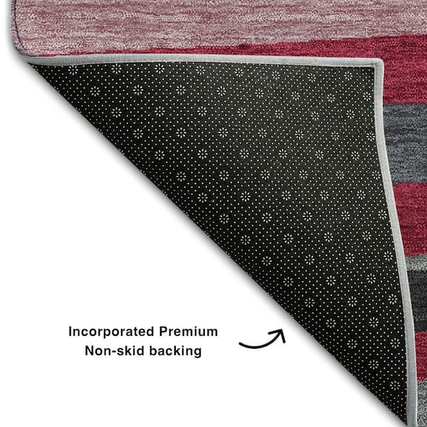 Mayfield Premium Machine Washable Abstract AMF997 Burgundy 8 ft. x 8 ft. Round Rug