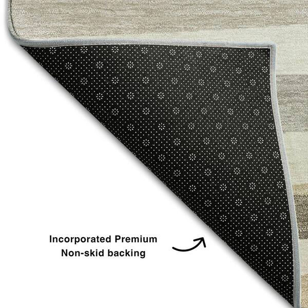 Mayfield Premium Machine Washable Abstract AMF997 Ivory 8 ft. x 8 ft. Round Rug