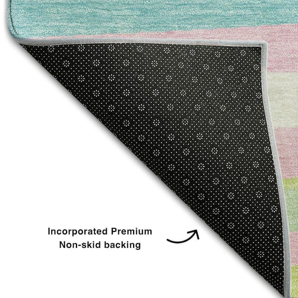 Mayfield Premium Machine Washable Abstract AMF997 Mint 8 ft. x 8 ft. Round Rug