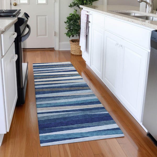 Mayfield Premium Machine Washable Abstract AMF997 Navy 2 ft. 3 in. x 7 ft. 6 in. Runner Rug
