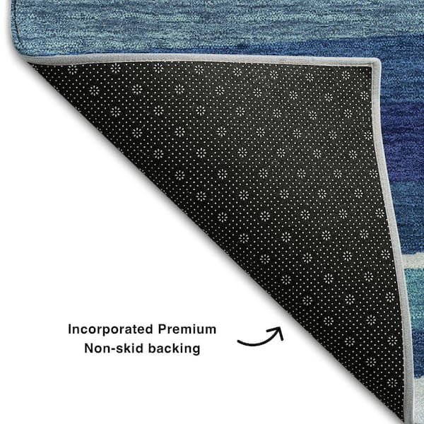 Mayfield Premium Machine Washable Abstract AMF997 Navy 8 ft. x 8 ft. Round Rug