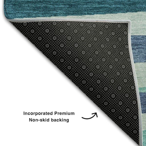 Mayfield Premium Machine Washable Abstract AMF997 Teal 8 ft. x 8 ft. Round Rug