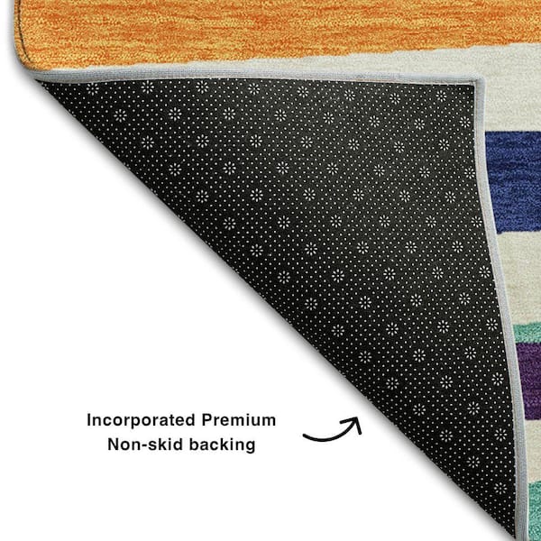 Mayfield Premium Machine Washable Abstract AMF997 White 8 ft. x 8 ft. Round Rug