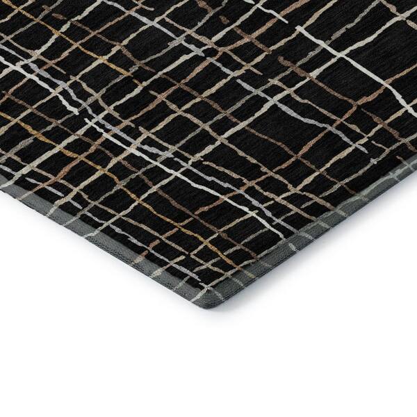 Mayfield Premium Machine Washable Abstract AMF998 Black 8 ft. x 8 ft. Round Rug