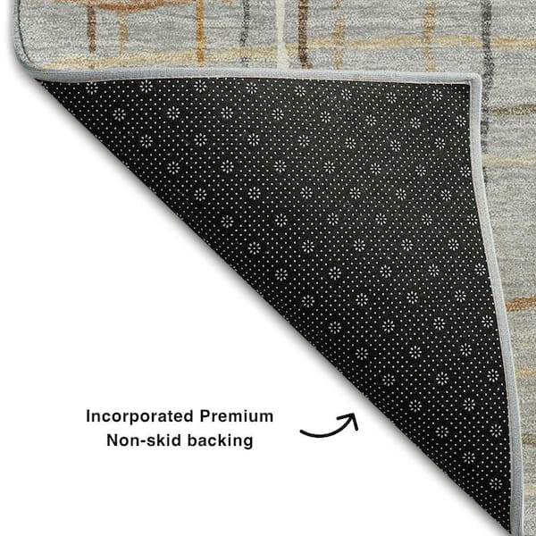 Mayfield Premium Machine Washable Abstract AMF998 Gray 8 ft. x 8 ft. Round Rug