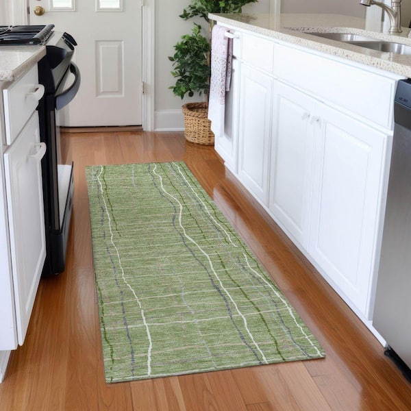 Mayfield Premium Machine Washable Abstract AMF998 Green 2 ft. 3 in. x 7 ft. 6 in. Runner Rug