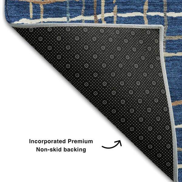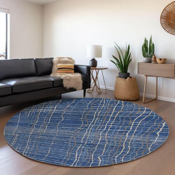 Mayfield Premium Machine Washable Abstract AMF998 Navy 8 ft. x 8 ft. Round Rug