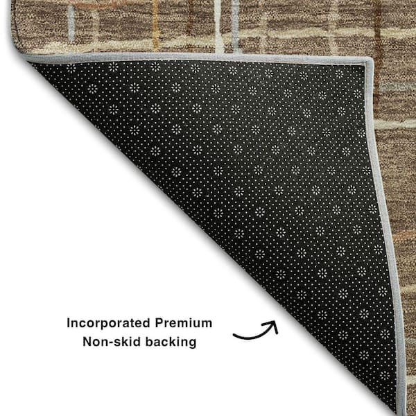 Mayfield Premium Machine Washable Abstract AMF998 Taupe 8 ft. x 8 ft. Round Rug