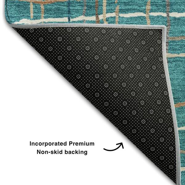 Mayfield Premium Machine Washable Abstract AMF998 Teal 8 ft. x 8 ft. Round Rug