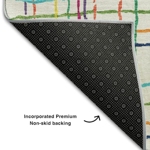Mayfield Premium Machine Washable Abstract AMF998 White 8 ft. x 8 ft. Round Rug