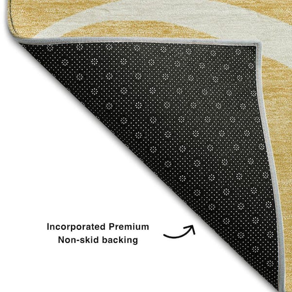 Mayfield Premium Machine Washable Abstract AMF999 Gold 8 ft. x 8 ft. Round Rug