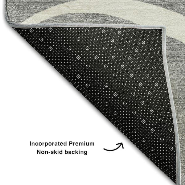 Mayfield Premium Machine Washable Abstract AMF999 Gray 8 ft. x 8 ft. Round Rug