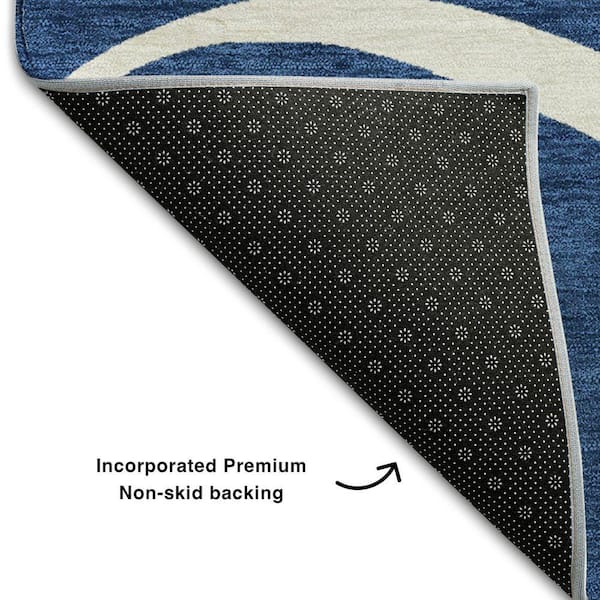 Mayfield Premium Machine Washable Abstract AMF999 Navy 8 ft. x 8 ft. Round Rug