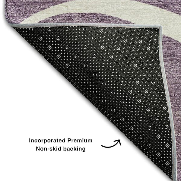 Mayfield Premium Machine Washable Abstract AMF999 Purple 8 ft. x 8 ft. Round Rug