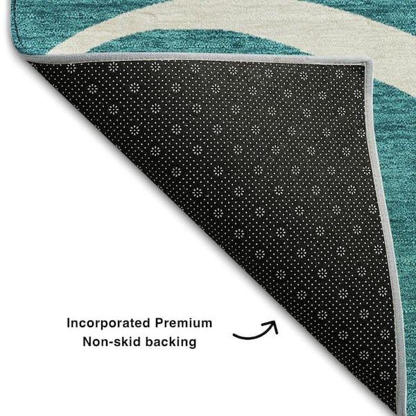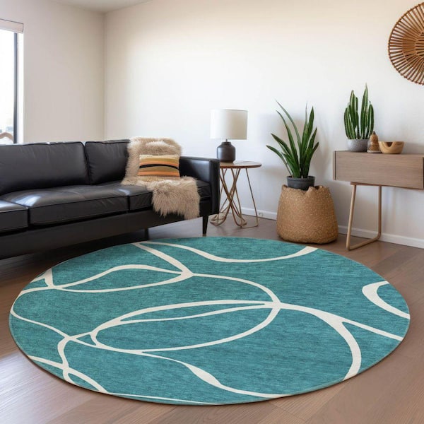 Mayfield Premium Machine Washable Abstract AMF999 Teal 8 ft. x 8 ft. Round Rug
