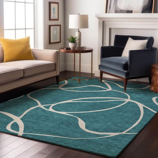 Mayfield Premium Machine Washable Abstract AMF999 Teal 9 ft. x 12 ft. Area Rug