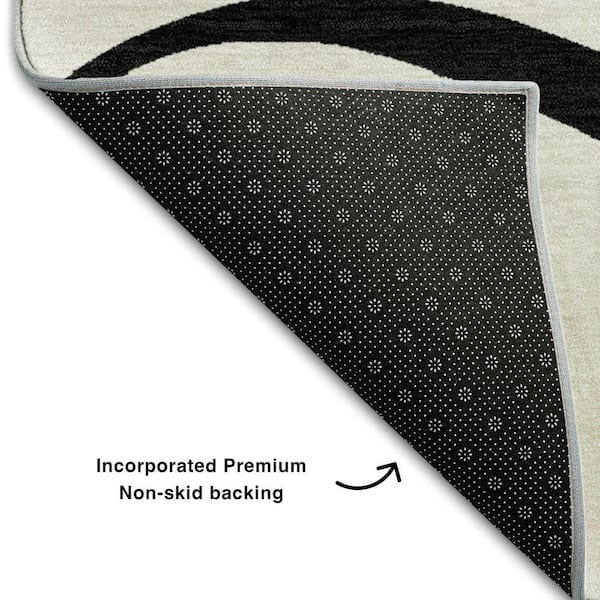 Mayfield Premium Machine Washable Abstract AMF999 White 8 ft. x 8 ft. Round Rug