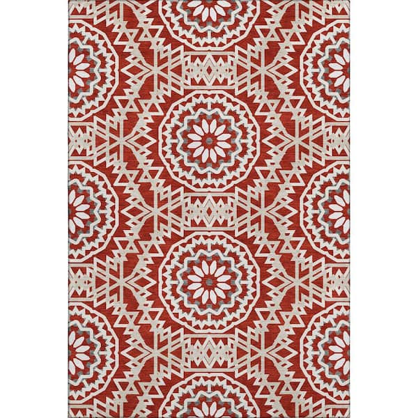 Mayfield Premium Machine Washable Indoor/Outdoor Geometric AMF619 Red 10 ft. x 14 ft. Area Rug