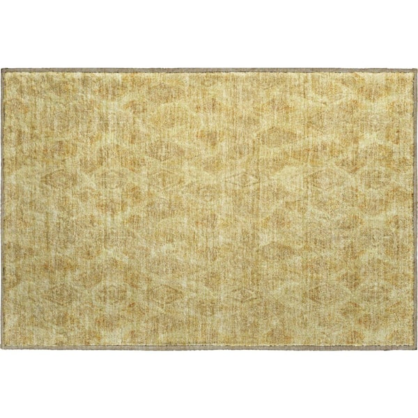 Mayfield Premium Machine Washable Indoor/Outdoor Geometric AMF622 Gold 1 ft. 8 in. x 2 ft. 6 in. Area Rug