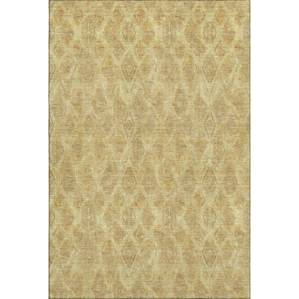Mayfield Premium Machine Washable Indoor/Outdoor Geometric AMF622 Gold 3 ft. x 5 ft. Area Rug