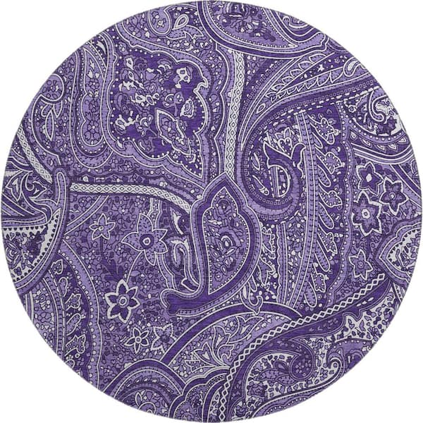 Mayfield Premium Machine Washable Indoor/Outdoor Geometric AMF623 Purple 8 ft. x 8 ft. Round Area Rug