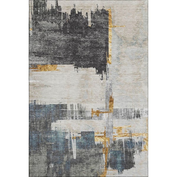 Mayfield Premium Machine Washable Indoor/Outdoor Geometric AMF624 Charcoal 3 ft. x 5 ft. Area Rug
