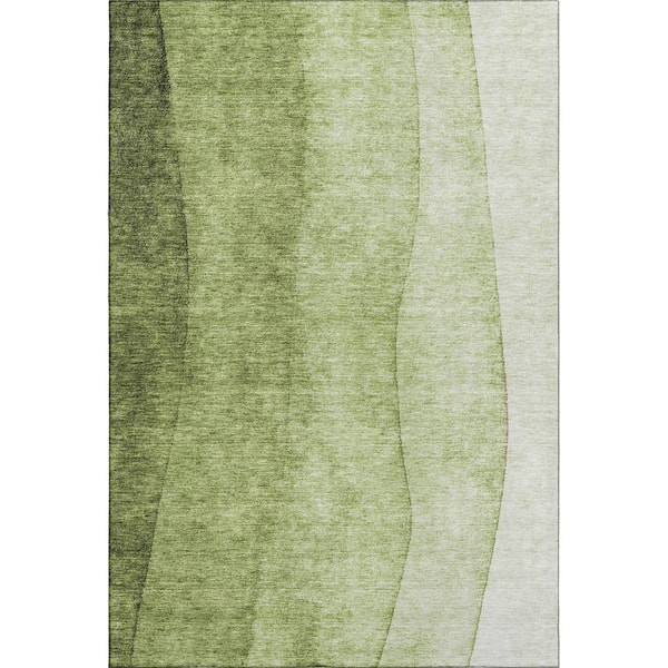 Mayfield Premium Machine Washable Indoor/Outdoor Geometric AMF625 Olive 9 ft. x 12 ft. Area Rug