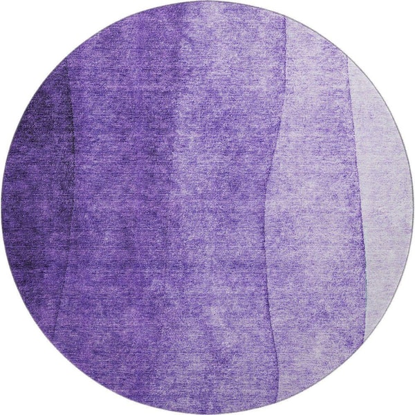 Mayfield Premium Machine Washable Indoor/Outdoor Geometric AMF625 Purple 8 ft. x 8 ft. Round Area Rug