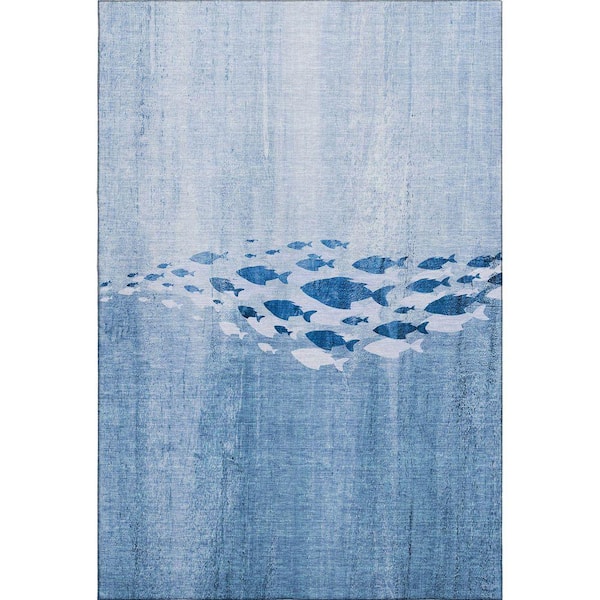 Mayfield Premium Machine Washable Indoor/Outdoor Geometric AMF627 Blue 3 ft. x 5 ft. Area Rug