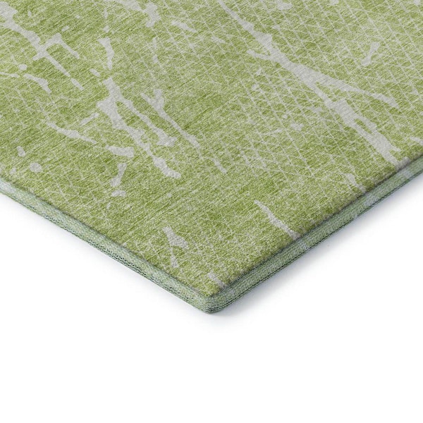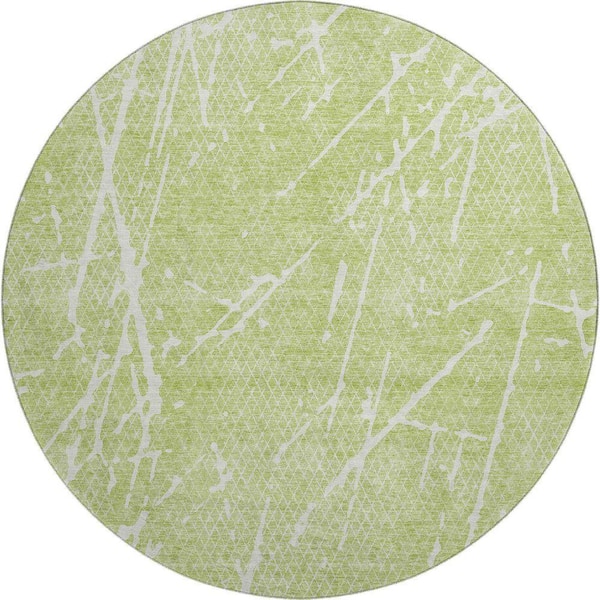 Mayfield Premium Machine Washable Indoor/Outdoor Geometric AMF628 Aloe 8 ft. x 8 ft. Round Rug
