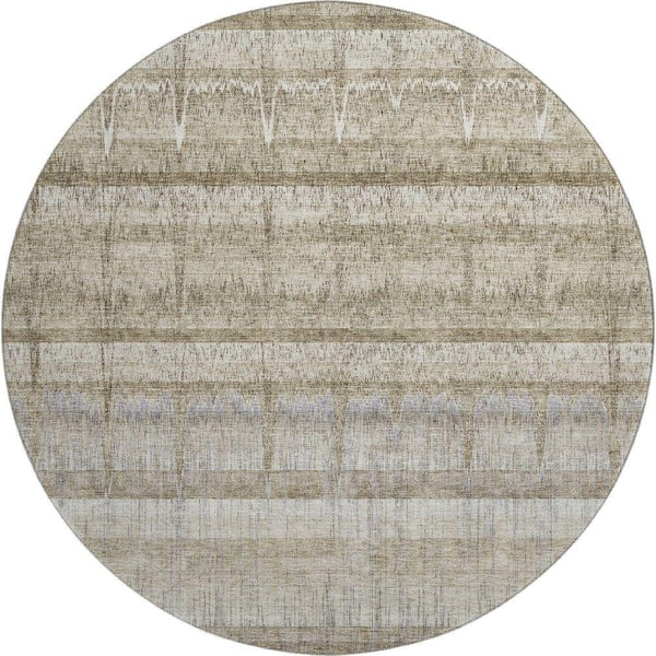 Mayfield Premium Machine Washable Indoor/Outdoor Geometric AMF629 Taupe 8 ft. x 8 ft. Round Rug