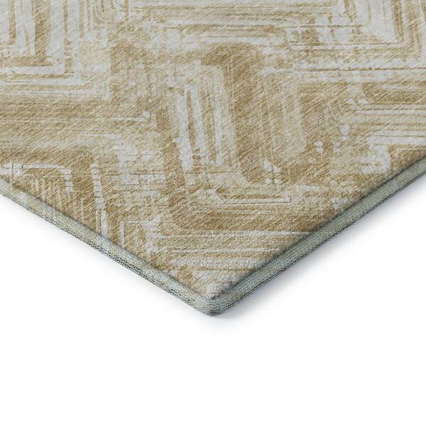 Mayfield Premium Machine Washable Indoor/Outdoor Geometric AMF630 Beige 8 ft. x 8 ft. Round Rug