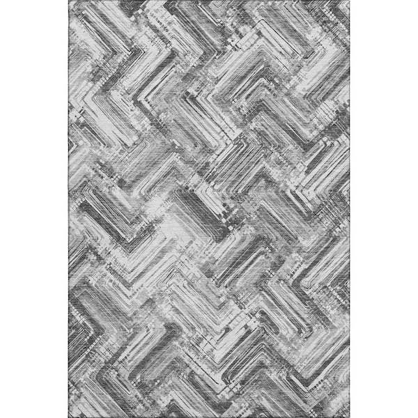 Mayfield Premium Machine Washable Indoor/Outdoor Geometric AMF630 Gray 8 ft. x 10 ft. Area Rug