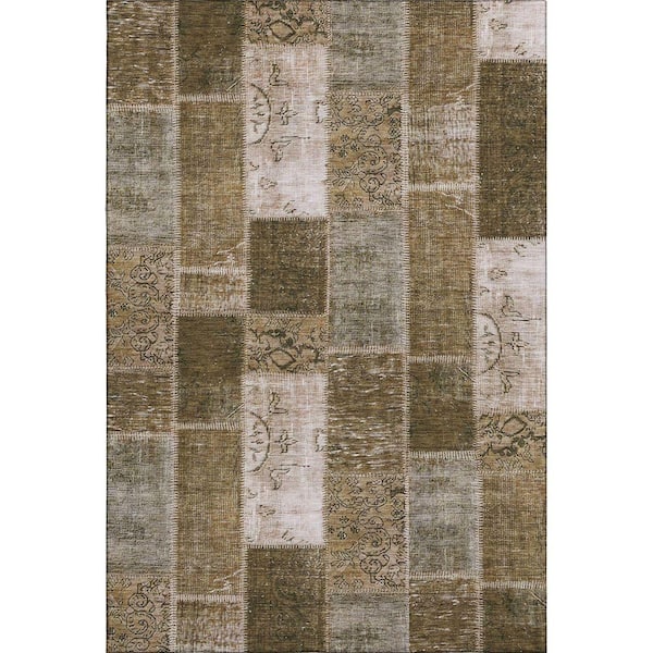 Mayfield Premium Machine Washable Indoor/Outdoor Geometric AMF631 Brown 8 ft. x 10 ft. Area Rug