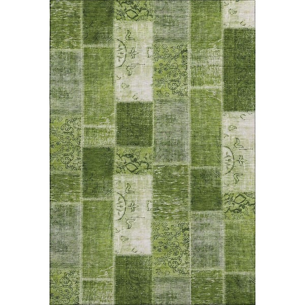 Mayfield Premium Machine Washable Indoor/Outdoor Geometric AMF631 Olive 9 ft. x 12 ft. Area Rug