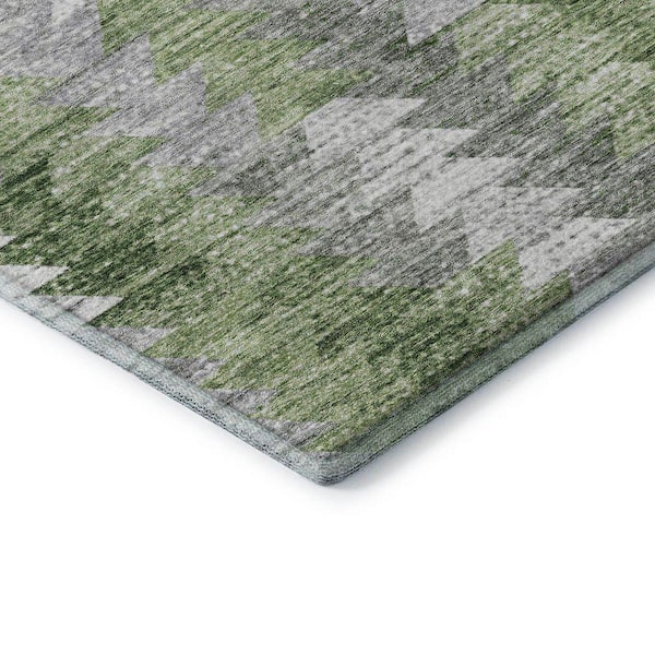 Mayfield Premium Machine Washable Indoor/Outdoor Geometric AMF632 Green 3 ft. x 5 ft. Area Rug